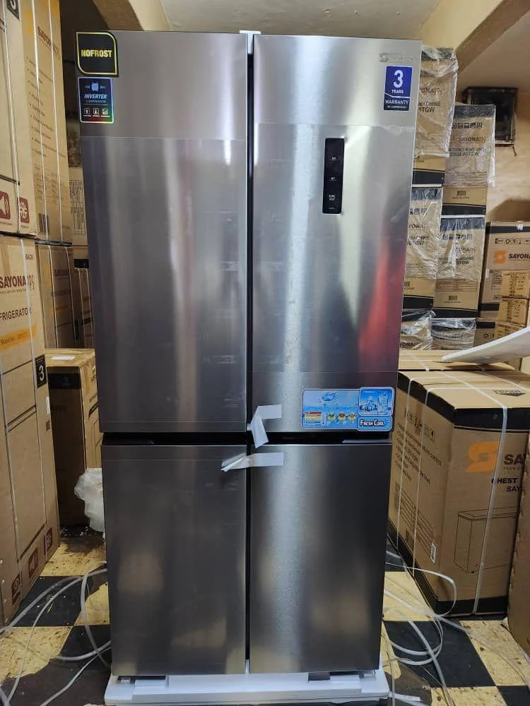 The Sayona SRF 442 is a stylish and modern four-door refrigerator designed to meet the needs of a contemporary household. This freestanding appliance features a stainless steel finish and a No Frost system, which prevents ice buildup and eliminates the need for manual defrosting. With its inverter compressor, the refrigerator operates quietly and efficiently, saving energy and reducing electricity costs. The spacious interior is well-suited for storing a wide range of groceries, with a multi-air flow system to ensure consistent cooling and keep food fresh for longer.