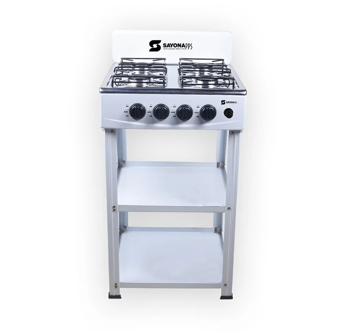 This Sayona All-Gas Cooker With Shelves brings a simple, efficient, and stylish appliance into your home. With a history of trusted innovation, they have real insight into the demands of modern life. So they not only look great in your kitchen but also make life easier by delivering outstanding results. The Gas flow has been highly made efficient, saving you a lot of gas. It is automatic ignition enabled, with a powder-coated body and sparkling stainless steel, absolutely rustproof and easy to clean. Normal flat front panel, with back guard for windproof purposes and plastic, stands for an easy firm grip.